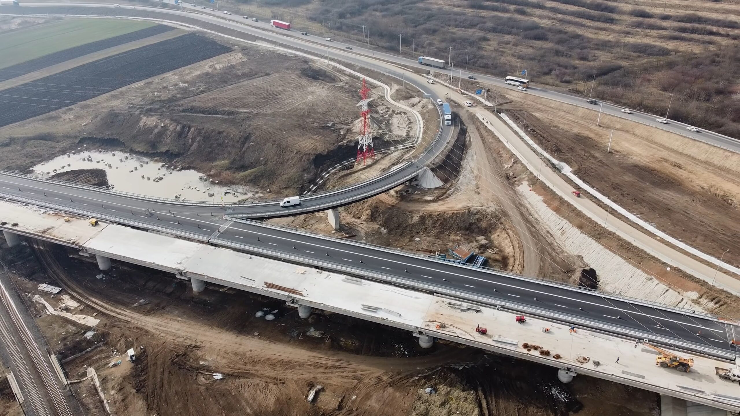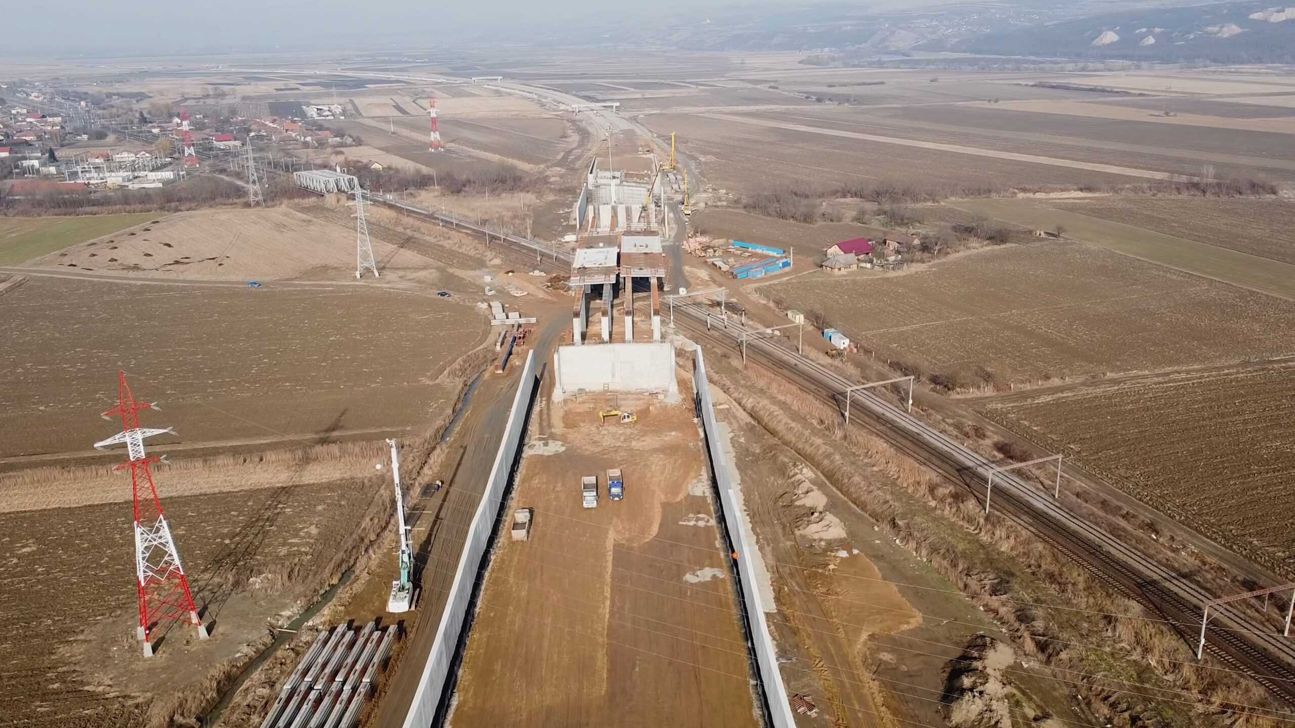 Obwohl die Temperaturen niedrig blieben, haben uns die guten Wettervorhersagen ermutigt, mit einem guten Tempo weiterzumachen, zumindest im Bereich der Straßenkreuzung Teiuș und der Passage über die Eisenbahn, bei km 26, wo die Betonarbeiten im Gange sind. Wir nutzen also das gute Wetter zum Frühlingsanfang, um das Tempo der Arbeiten zu beschleunigen. Das Ergebnis sieht von oben „blühend“ aus!